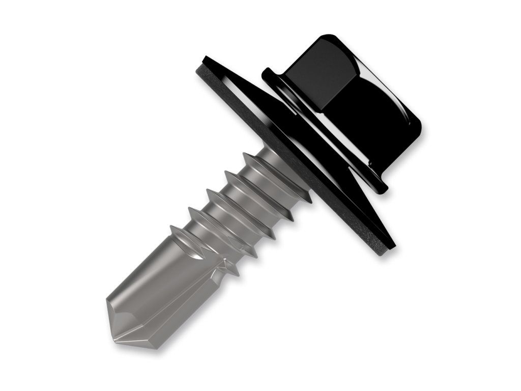 Šroub samovrtný (farmářský) 4,8x20 s podložkou EPDM (RAL 9005) černá plech/plech