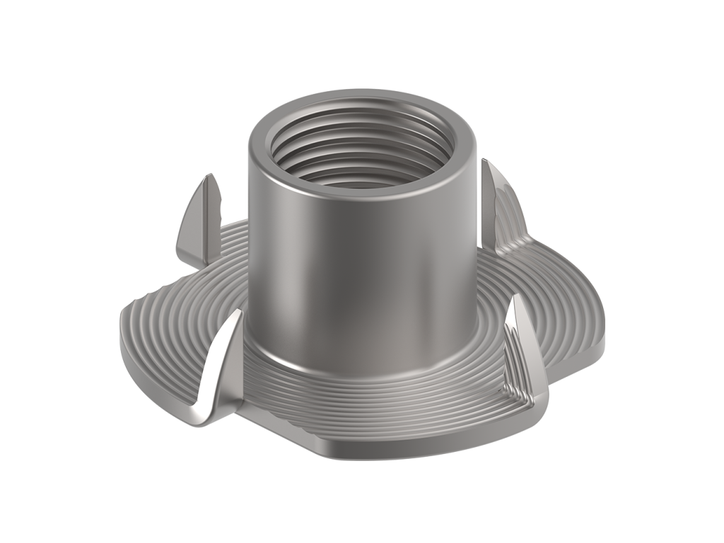 Narážecí matice s metrickým závitem do dřevotřísky a dřeva v provedení v bílém galvanickém zinku. Matice jsou vhodné pro skryté spoje při spojování dřevěných prvků pomocí šroubů s metrickým závitem. Ostré hroty na přírubě fixují pozici matice v požadované poloze. Matice se natlouká do již předvrtaného otvoru.Doplňkové parametry