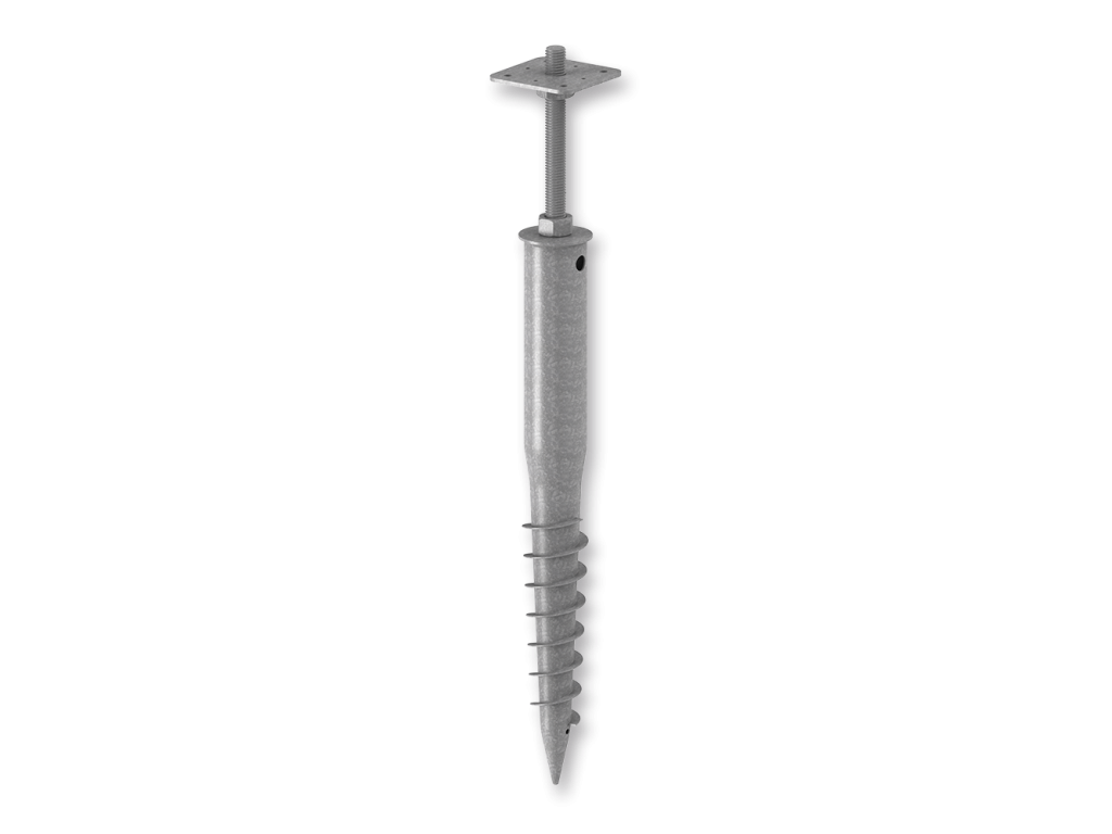 Technologie použití zemních vrutů je velmi mladá a vysoce efektivní. Tyto vruty jsou oblíbené pro svoji časově nenáročnou a přesnou instalaci, oproti dříve používaným hrotům natloukacím je také nutné zdůraznit lepší instalaci vrutu v podkladovém materiálu. Při montáži dochází ke specifickému udusání okolního podkladového materiálu a závit na dříku hrotu nám výrazně usnadňuje fixaci hrotu v zemině. Nespornou výhodou použití zemních vrutů je také jejich snadná demontáž. Patka pilíře umožňuje výškového nastavení a je určena pro připevnění dřevěných hranolů a trámků. Vhodné pro výstavbu přístřešků, pergol, plotů, zahradních staveb a dřevostaveb.Doplňkové parametry